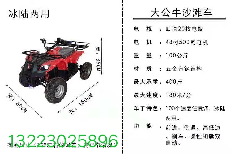 海倍沙灘車配置升級,采用防滑輪胎、輕松爬坡、強效減震、高速電機、LED炫燈、動力強勁。