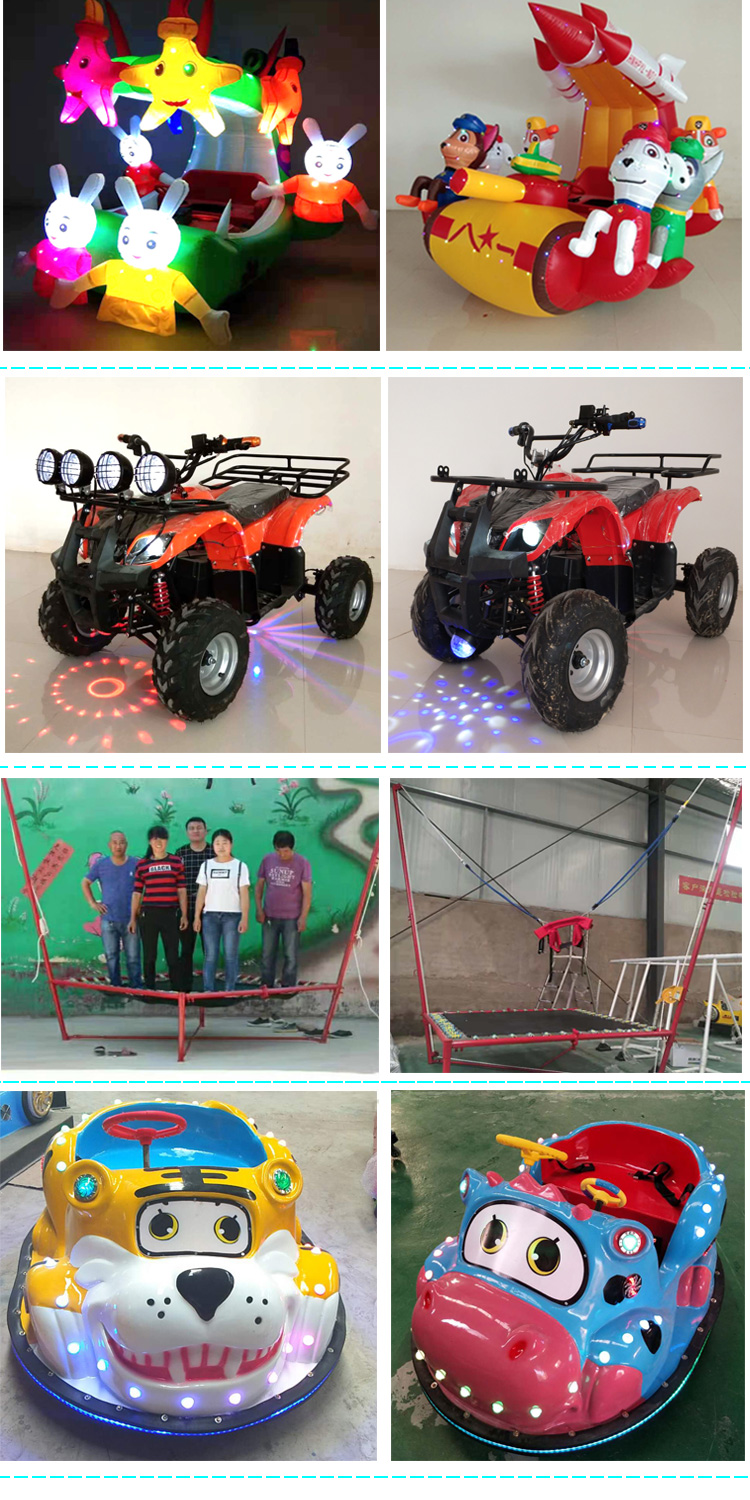 河南海倍游樂設備有限公司是一家專門從事兒童充氣電瓶車、飛碟碰碰車、機器人蹬車、充氣蹦蹦床、毛絨動物車等產品專業生產加工的企業,擁有完整、科學的質量管理體系,先進的生產設備,一流的技術服務,完美的售后,一直以來贏得廣大客戶的一直好評,公司以誠信為根本,以質量求生產,創新求發展的經營理念,一步一個腳印,穩步向前發展。