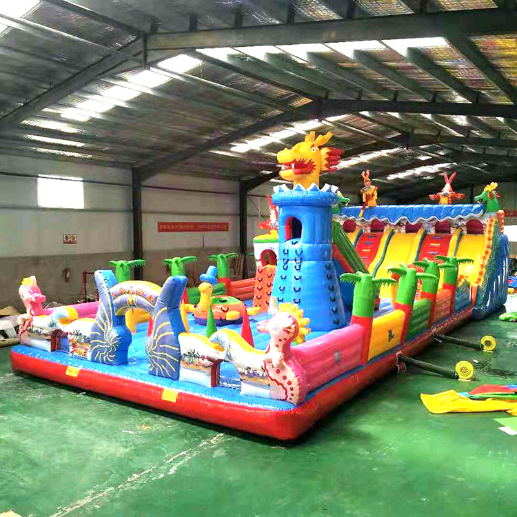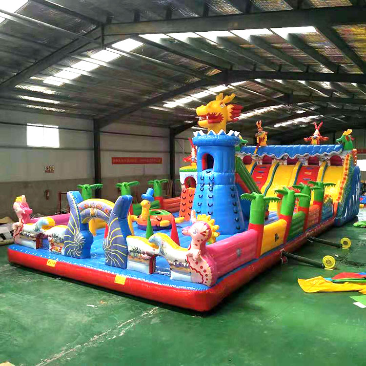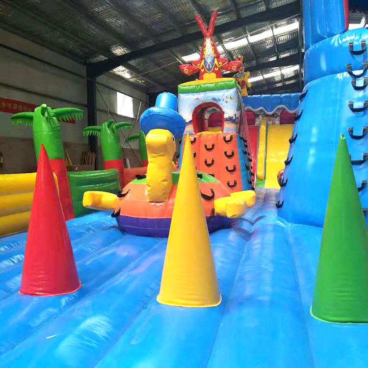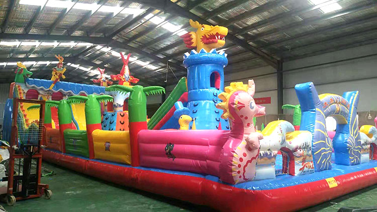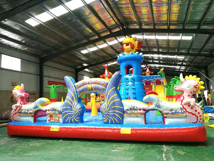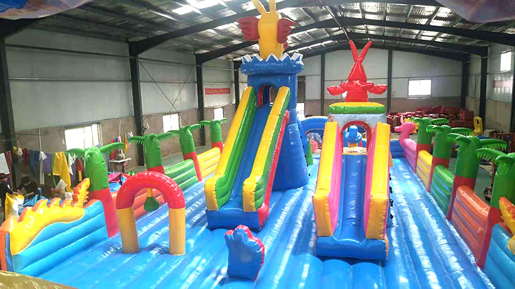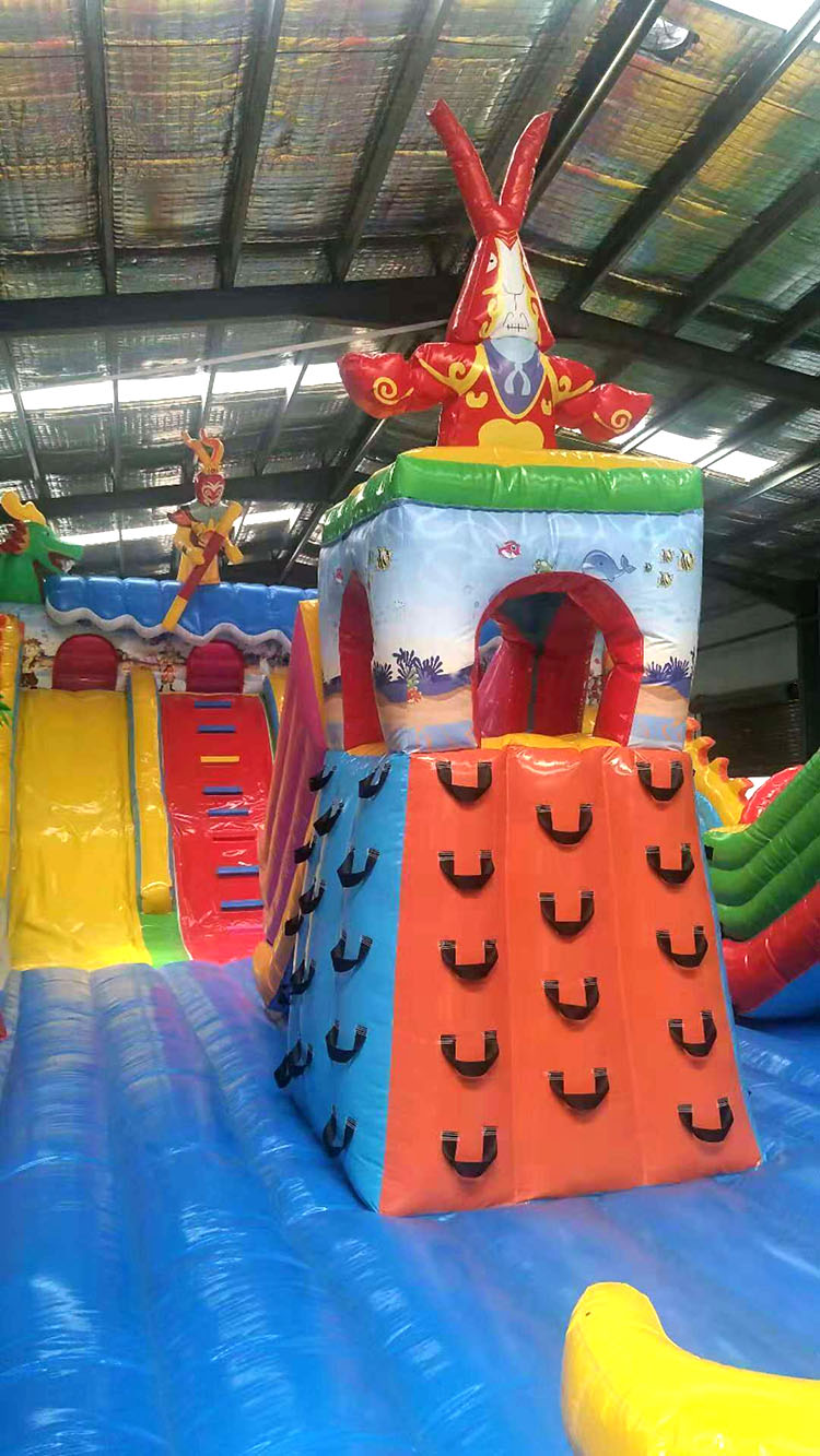 海倍游樂城堡事部專注城堡數十年如一日,有專門的設計和研發部門,有專門的城堡生產車間,接受來樣訂制,來圖設計,可以根據您的場地大小長寬多少制作