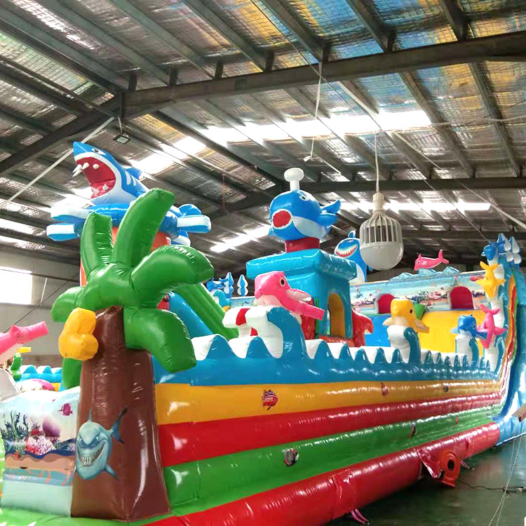 海倍游樂城堡事部專注城堡數十年如一日,有專門的設計和研發部門,有專門的城堡生產車間,接受來樣訂制,來圖設計,可以根據您的場地大小長寬多少制作